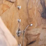 Genießen Sie den Komfort eines Badezimmers in der Unterkunft, das mit Handtüchern ausgestattet ist. Außerdem gibt es hier eine getrennte Toilette und eine Dusche.
